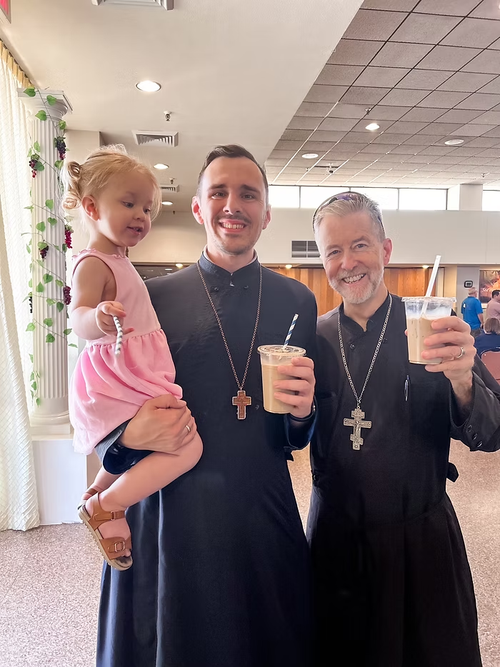 Presbytera Laura: That’s a great question. It’s definitely added to the fullness of life. I wouldn’t say it’s been a burden; in fact, it’s given me a new way to serve that actually fits into my life. Like I said, I keep the process really streamlined—pre-made cold brew, simple prep—so it’s manageable even with young kids and everything else going on. And I think it’s affected how I view my vocation by reminding me that ministry doesn’t have to look a certain way. It can be as simple as showing up with coffee and a smile and creating a space where people feel welcome. That, to me, is just as holy as anything else we do in the church.